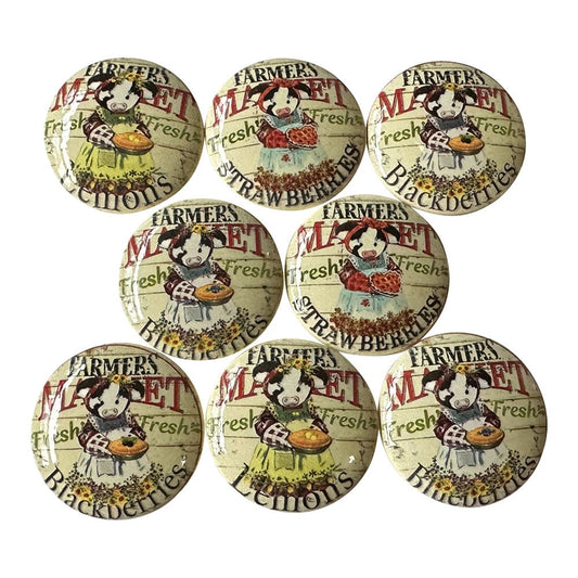 Set of 8 Farmers Market Cow Print Wood Cabinet Knobs, Draw Knobs, Farmhouse Style, Kitchen Knobs
