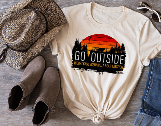 Go Outside, Worst Case Scenario, A Bear Eats You T Shirt, Tshirt, Graphic T's 100% Cotton Tee