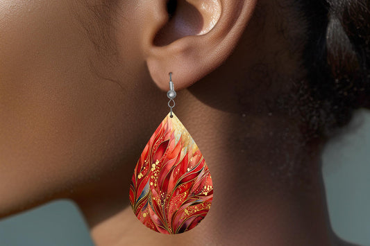 Phoenix Red Print Earrings Print Tear Drop Wood Dangle Earrings Hypoallergenic Jewelry