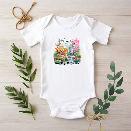 New Release, Baby Bodysuit, Deer Mad Love for my Momma One Piece Baby Suit, Baby Gift, Long / Short Sleeve, 0-18 Months size