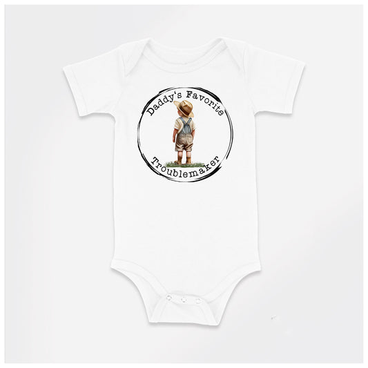 New Release, Baby Bodysuit, Daddy's Favorite Troublemaker One Piece Baby Suit, Baby Gift, Long / Short Sleeve, 0-18 Months size