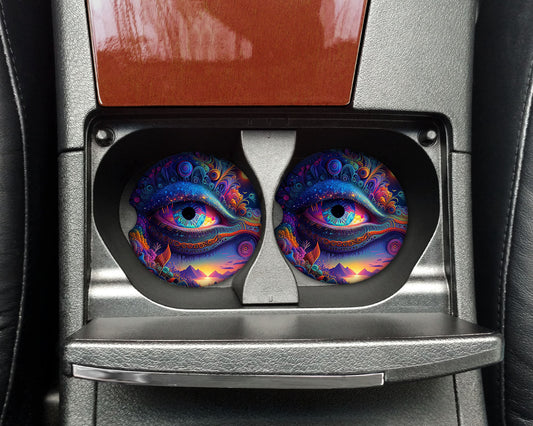 Set of 2 Psychedelic Eye Sandstone Car Coasters, Car Accessory