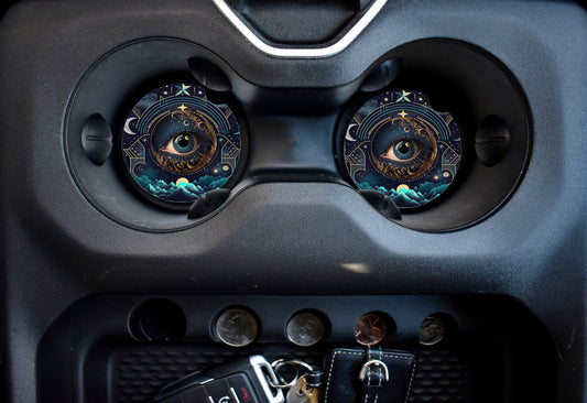 Set of 2 Celestial Evil Eye Sandstone Car Coasters, Car Accessory