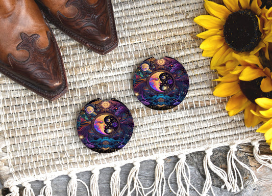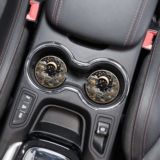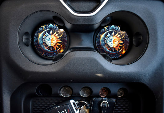 Set of 2 Celestial Symbols Sandstone Car Coasters, Car Accessory