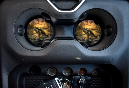 Set of 2 Fish Jumping in Lake Sandstone Car Coasters, Car Accessory