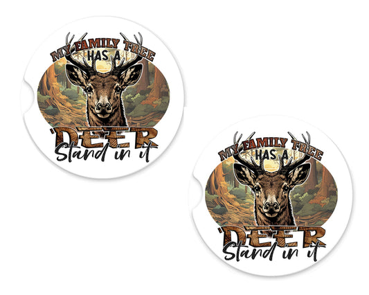 Set of 2 My Family Tree has a Deer Stand in It Sandstone Car Coasters, Car Accessory