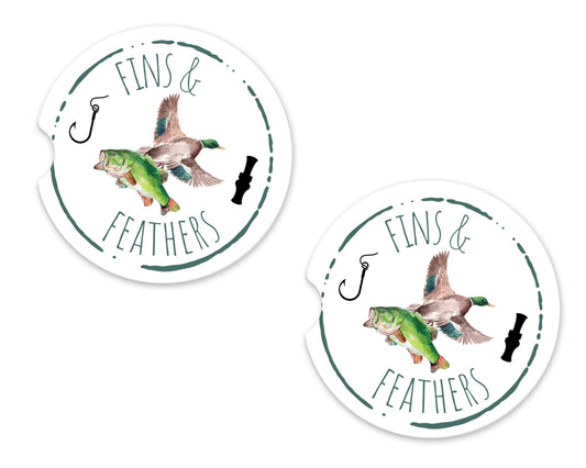 Set of 2 Fins and Feathers Sandstone Car Coasters, Car Accessory