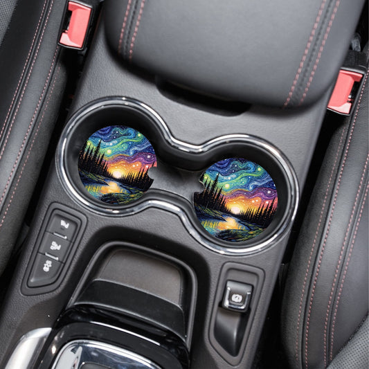New Release, Set of 2 Northern Lights River Sandstone Car Coasters, Car Accessory