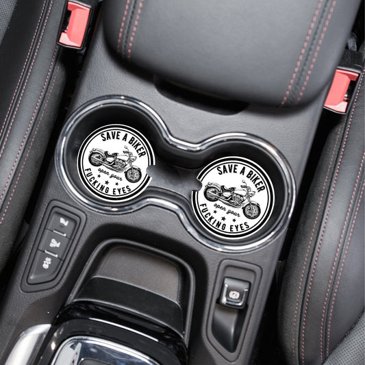 New Release, Set of 2 Save a Biker Sandstone Car Coasters, Car Accessory