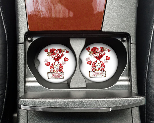 New Release, Set of 2 Love You and Me Sandstone Car Coasters, Car Accessory