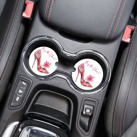 Set of 2 Pink Buy the Shoes Sandstone Car Coasters, Car Accessory