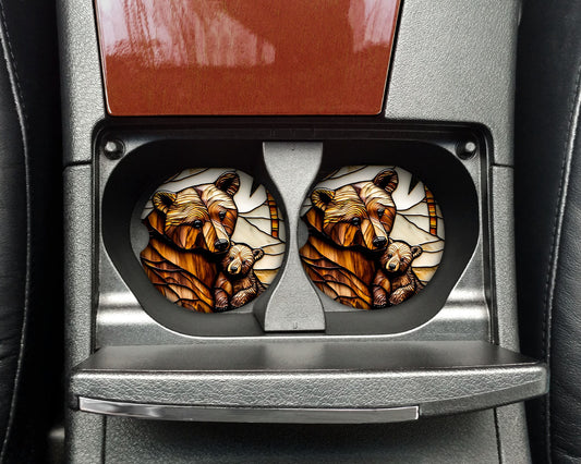 Set of 2 Stain Glass Bear Sandstone Car Coasters