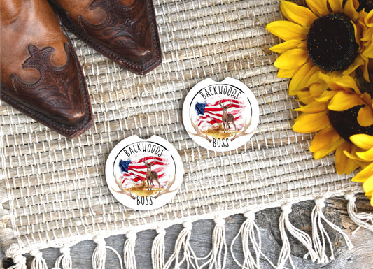 Set of 2 Backwoods Boss Sandstone Car Coasters