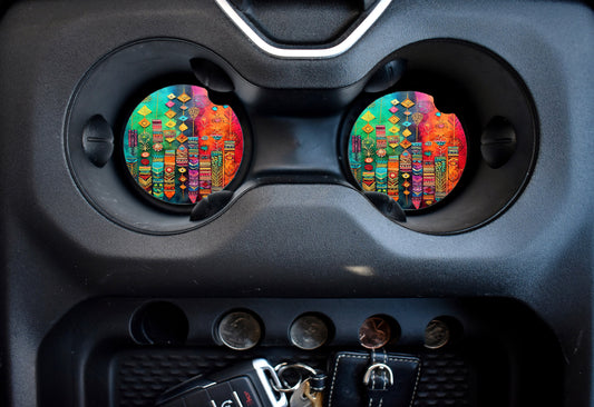 Set of 2 Boho Tapestry Sandstone Car Coasters, Car Accessory