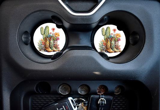 Set of 2 Boots and Cactus Sandstone Car Coasters