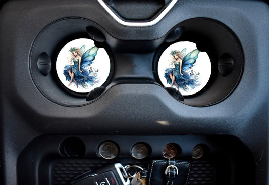Set of 2 Blue Fairy Sandstone Car Coasters