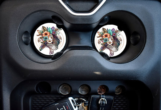 Set of 2 Boho Beauty Sandstone Car Coasters