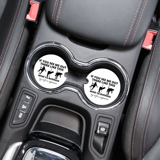 New Release, Set of 2 If You See Me Out There Like This Mind Ya Business My Wife is Expensive Sandstone Car Coasters, Car Accessory