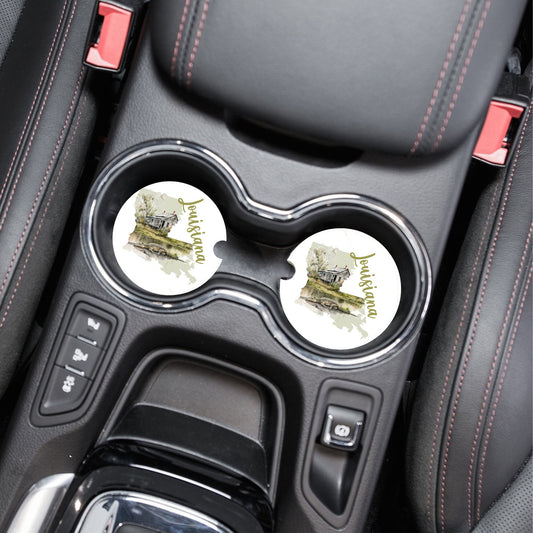 Set of 2 Born on the Bayou Sandstone Car Coasters, Car Accessory