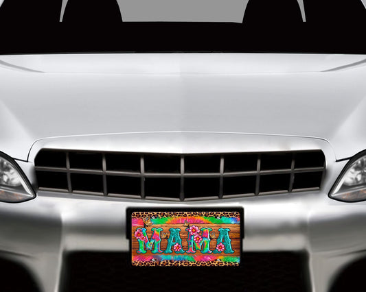 Sunflower Orange Leopard Print Aluminum Front License Plate