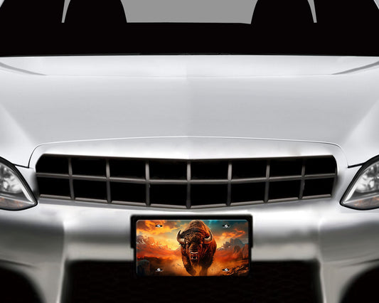 Western Vanity Front License Plate, Charging Buffalo Aluminum Vanity License Plate Car Accessory Decorative Front Plate
