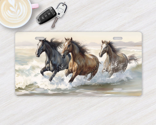 Vanity Front License Plate, Horses in Surf Aluminum Vanity License Plate Car Accessory Decorative Front Plate