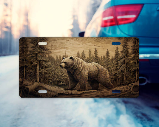 Vanity Front License Plate, Wood Carve Bear Aluminum Vanity License Plate Car Accessory Decorative Front Plate