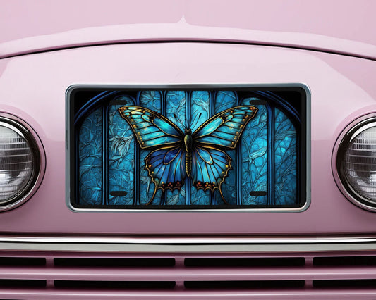 Vanity Front License Plate, Blue Butterfly Aluminum Vanity License Plate Car Accessory Decorative Front Plate