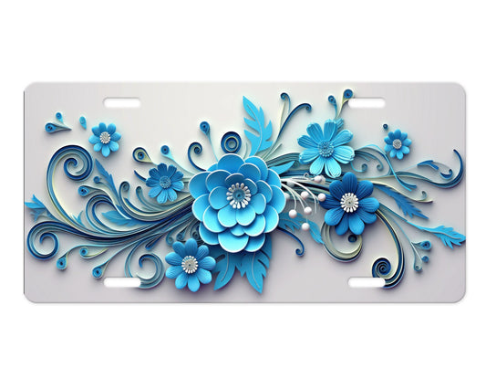 Vanity Front License Plate, Blue Flower Swirl Aluminum Vanity License Plate Car Accessory Decorative Front Plate