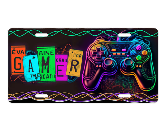 Vanity Front License Plate, Neon Gamer Aluminum Vanity License Plate Car Accessory Decorative Front Plate