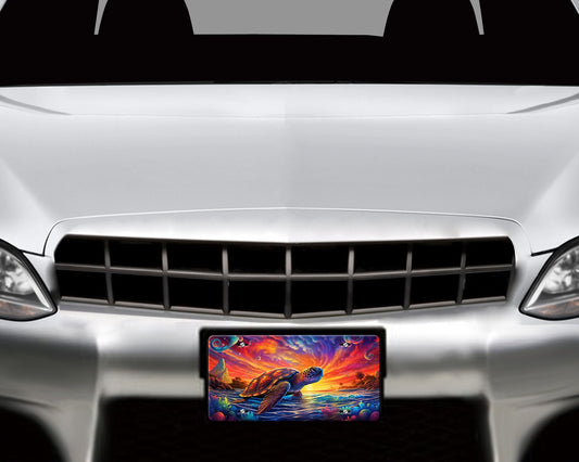 Vanity Front License Plate Neon Sea Turtle Aluminum License Plate Car Accessory Decorative Front Plate