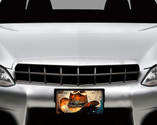 Vintage Rustic Cowboy Hat Vanity Front License Plate, Aluminum License Plate Car Accessory Decorative Front Plate
