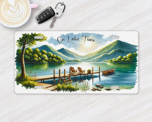 On Lake Time Vanity Front License Plate, Aluminum License Plate Car Accessory Decorative Front Plate