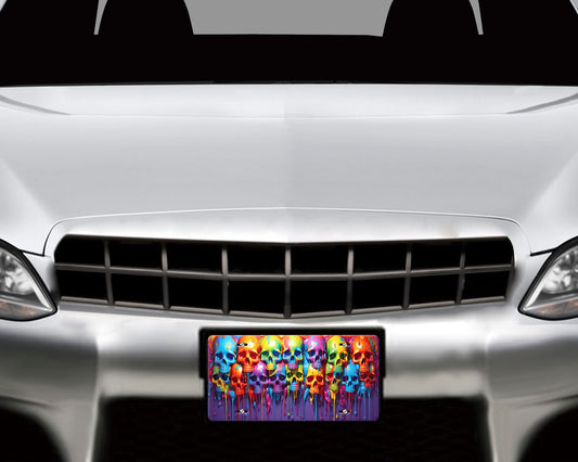 Color Drip Skulls Aluminum Vanity License Plate Car Accessory Decorative Front Plate