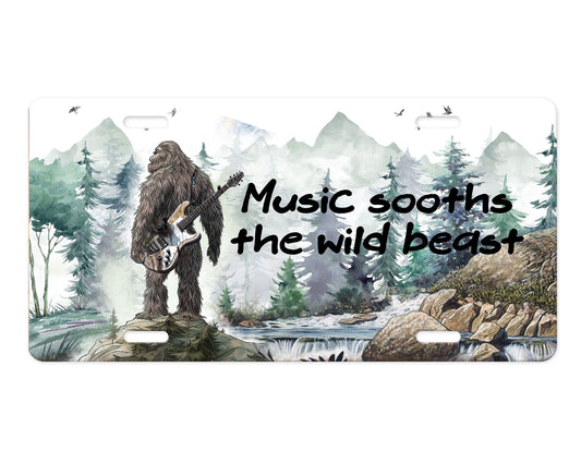 Vanity Front License Plate Bigfoot Music Soothes the Beast Aluminum Vanity License Plate Car Accessory Decorative Front Plate
