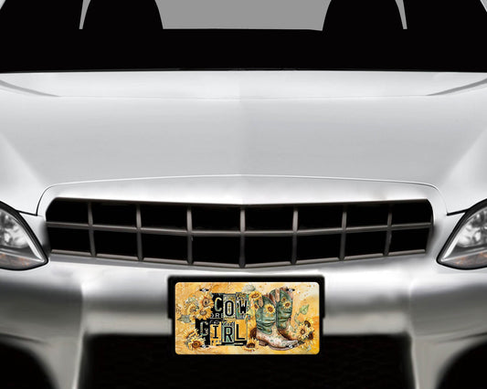 Vanity Front License Plate, Yellow Cowgirl Aluminum Vanity License Plate Car Accessory Decorative Front Plate