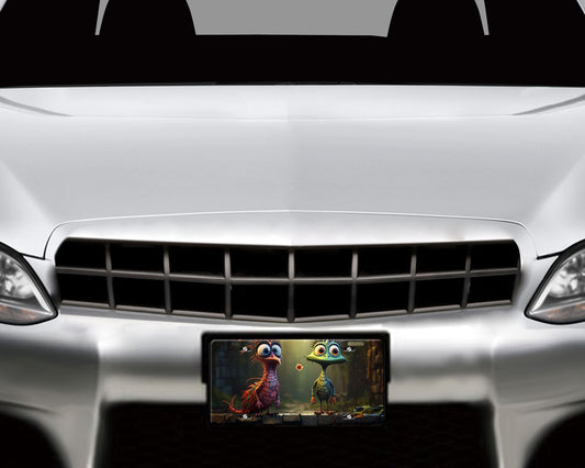 Vanity Front License Plate, Alien Bird Pair Aluminum Vanity License Plate Car Accessory Decorative Front Plate