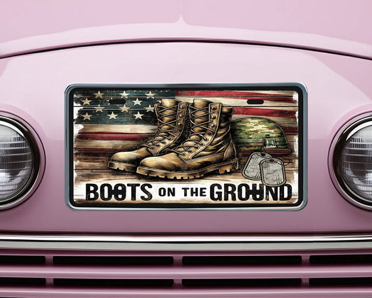 Vanity Front License Plate, Boots on the Ground Aluminum License Plate Car Accessory Decorative Front Plate