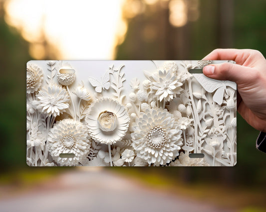 Vanity Front License Plate Monochrome Flowers Aluminum License Plate Car Accessory Decorative Front Plate