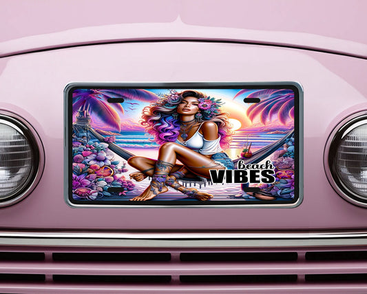 Vanity Front License Plate, Beach Vibes Girl Aluminum License Plate Car Accessory Decorative Front Plate