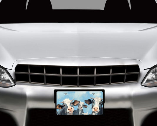 Vanity Front License Plate, Cows on Blue Aluminum License Plate Car Accessory Decorative Front Plate