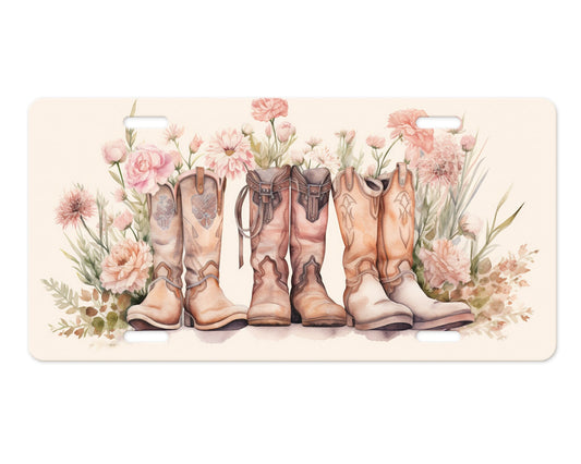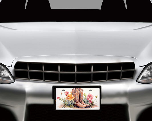 New Release License Plate, Boots and Flowers Printed Aluminum Front License Plate, Car Accessory, Vanity Plate, Cute Car Tag