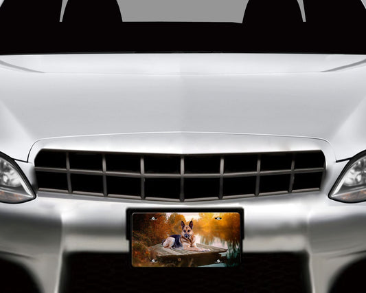 New Release License Plate German Shephard Dog on Dock Printed Aluminum Front License Plate, Car Accessory, Vanity Plate, Cute Car Tag