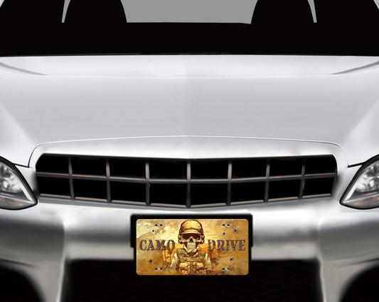 New Release License Plate, Camo Drive Skeleton Printed Aluminum Front License Plate, Car Accessory, Vanity Plate, Cute Car Tag
