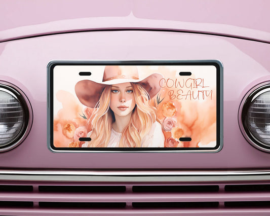 New Release License Plate, Cowgirl Beauty Printed Aluminum Front License Plate, Car Accessory, Vanity Plate, Cute Car Tag