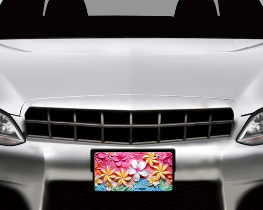 Hawaiian Flowers Aluminum Front License Plate, Car Accessory, Vanity Plate