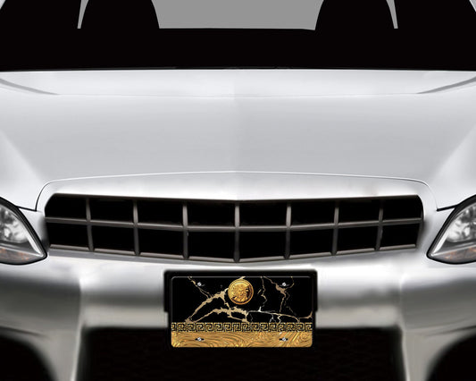 Black and Gold Greek Key Medallion Aluminum Vanity License Plate Car Accessory Decorative Front Plate