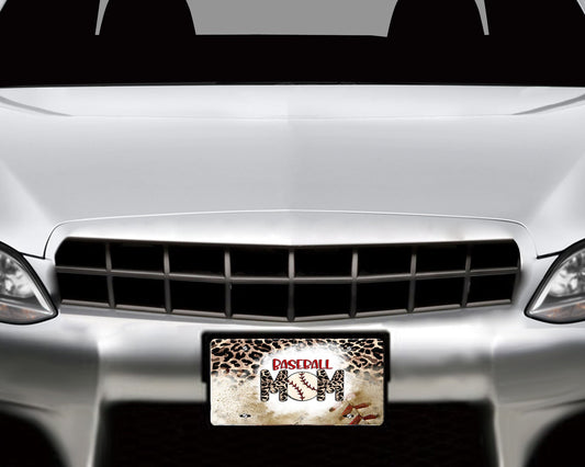 Leopard Print Baseball Mom Aluminum Vanity License Plate Car Accessory Decorative Front Plate