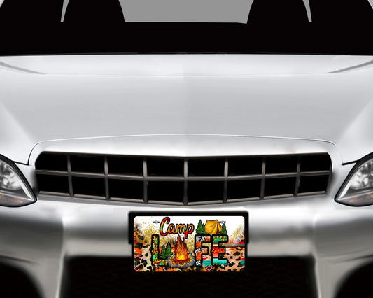 Leopard Print Camp Life Aluminum Vanity License Plate Car Accessory Decorative Front Plate
