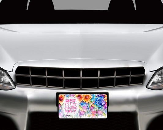 Floral It's Fine, I'm Fine, Everything is Fine Aluminum Vanity License Plate Car Accessory Decorative Front Plate